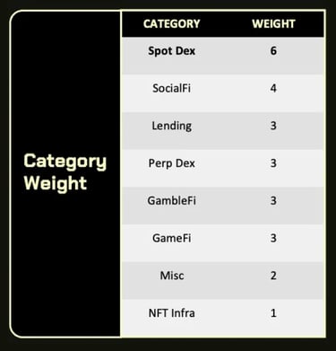 Maybe the most innovative aspect of pacman’s launch of blast was the start of the Blast Big Bang competition. The blast big bang competition was designed to build the first layer of Dapps onto Blast, a L2 is nothing without the products on it. The competition was designed to onboard the best builders in Crypto, and immediately incentivize founders by offering a large and motivated user base, as well as a share of a pie into the future of the Blast ecosystem. Pacman a y combinator alumn, was very familiar with competing and working with entrepreneurs in building the best products in web2. The Big Bang competition worked so well because of the rewards behind Blast gold. The game master created an incentives system not only for users on the platform, but now also for the builders. You can view the whole list of the Big Bang competition winners here. Categories range from everything from perp dexes to gamblefi to NFT markets. Each with different weightings of gold. Socialfi being ranked among the highest as pacman continues to listen to the Users and put the community first. The whole marketplace was now gamified, the flywheel of users continue to build and so too did the innovation and creativity of the products in the marketplace.
