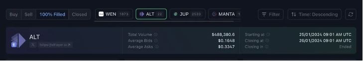 The average bid on $ALT was in the 1.6b mc range to 3.3b mc range. We are currently trading at 4b mc and had a high of roughly 4.4b mc at the time of this publication. So again another great buying opportunity.