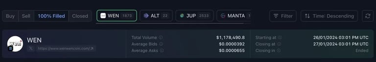 The average bid for $WEN was in the 39.2m mc range to 65.5m mc range for filled orders. Currently we are trading at 160m mc.