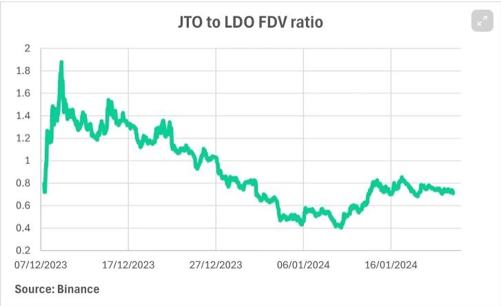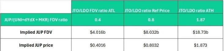 Now you may ask yourself at what range will we trade to our comps, if this is our expectation. When we compare it to JTO, the last major cap Solana airdrop. It traded roughly in the range from .4x to 1.8x to its ETH equivalent LDO.
