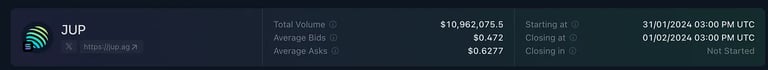 Knowing this information the OTC markets are roughly inline with our expectations, of JUP trading at the lower end of its comps range at roughly .4x-.8x at opening. With a possibility of going as high as 1.8x in the most bullish scenario. This would give $Jup one of the largest valuations of any protocol on Solana. I expect the opening of this coin to be a total pandemonium, riddled with sniping bots and poorly setup LPs. However, should any of these thesis be validated in the opening minutes/hours of the ICO, it should help you make an informed decision with the research done before hand. Good luck out there.