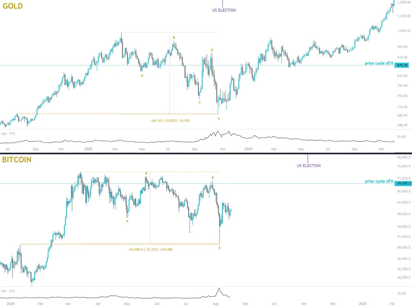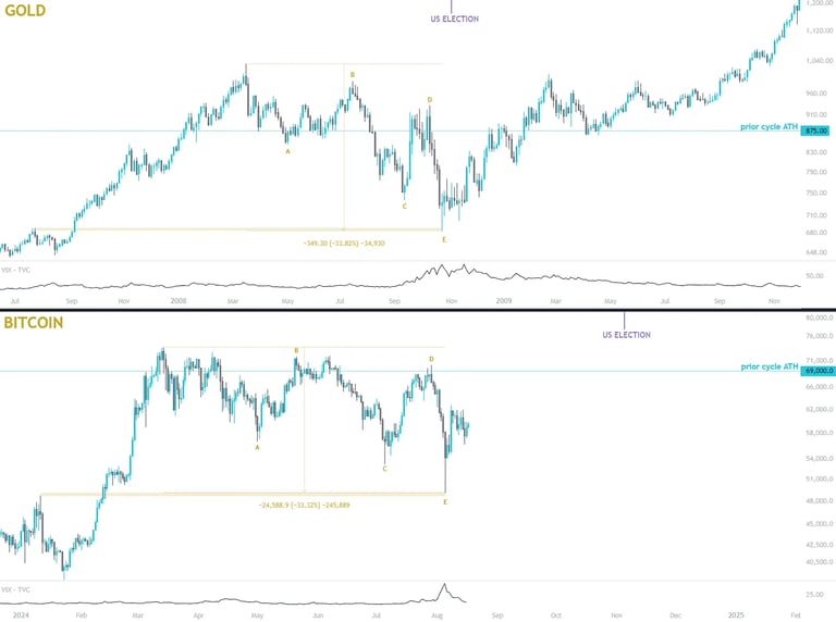 Since you’ve made it this far my dear reader, I will share with you a little nugget (no pun intended ha!). Even more interesting is the fractal pattern Bitcoin seems to be mimicking with gold in its earlier price discovery era post GLD. I’ve analyzed 100s of fractals, and none seem to come closer to me so far. See the chart I’ve shared below that compares BTC’s current price action to gold’s historical moves around previous U.S. elections. I worked with @nestayxbt on my findings and he agrees, and has helped to paint this beautiful chart below (give him a follow if you haven’t already). These analogies reinforce the belief that we’re at the start of something huge.