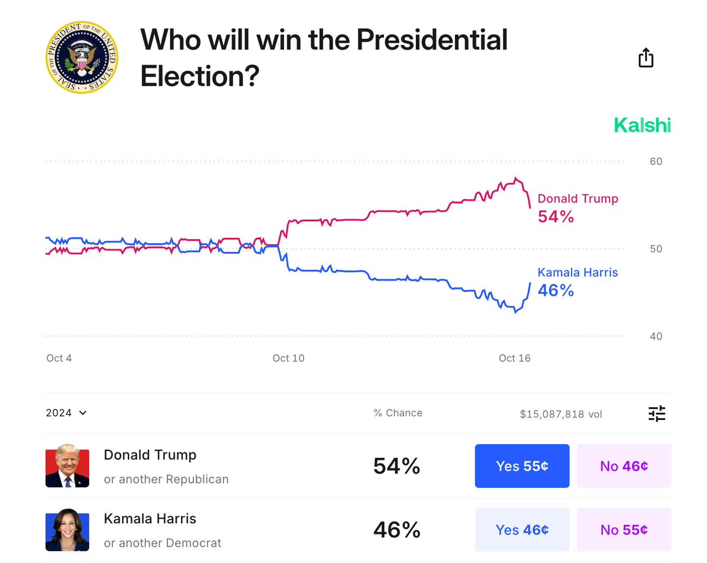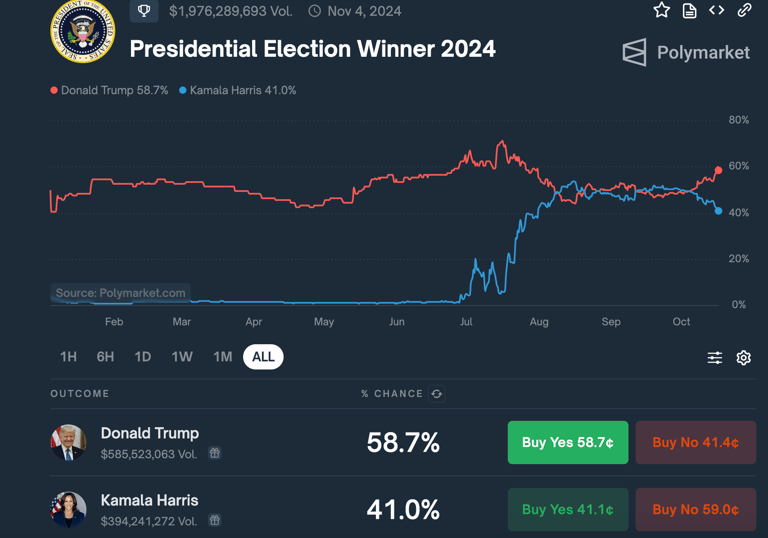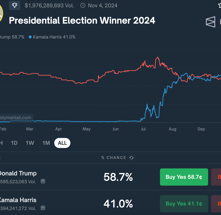 The market has been turbulent, to say the least, but let’s start by framing this within the context of 2024's election year. The upcoming U.S. presidency is a massive catalyst, and no one can deny the close relationship between political leadership and the crypto markets. While both nominees Kamala and Trump are sure to hand out welfare checks to its constituents. Donald Trump, who’s already made significant strides in prediction markets, is shaping up to be a huge favorite for this next term. His approach to the crypto industry is what participants think it takes for BTC and the broader market to new highs. Whether this is true or not from a policy perspective is irrelevant. It is only relevant that this is what participants think by and large, and when enough of us believe that something is that market consensus it becomes consensus. Crypto is indeed no stranger to the Keynesian beauty contest.