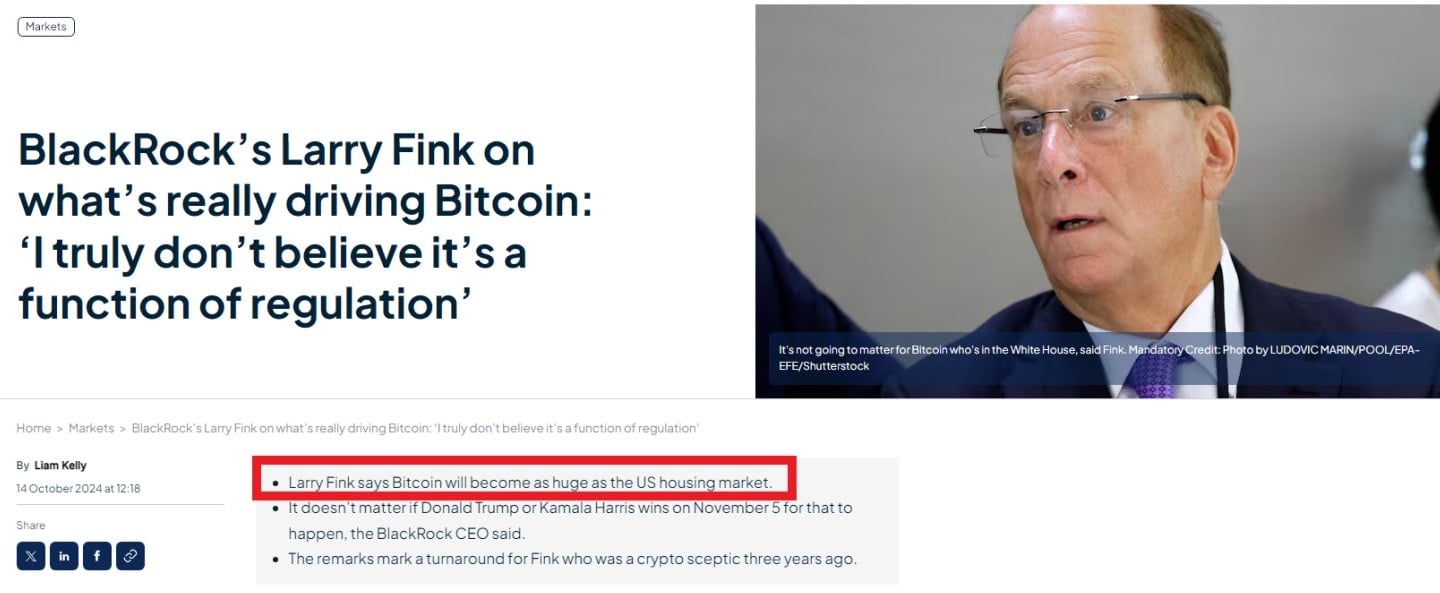 Bitcoin is positioned to become a store of value akin to the housing market— and you have Larry Fink, BlackRock’s CEO, going on record saying Bitcoin could become as significant as the U.S. housing market. With the halving in play and the most powerful men in the room being your biggest advocates, Bitcoin is undergoing a supply squeeze that, combined with macroeconomic conditions, points to an inevitable surge.