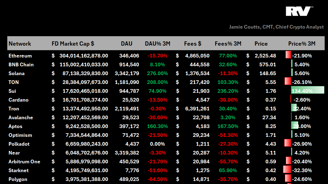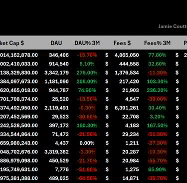 Look at Solana’s price action in recent months—after stagnating for months, the token has surged with a 276% increase in daily active users (see chart below). A Trump-led regulatory environment would bring capital and liquidity back into the market. Just as we've seen with Ethereum's recent surge in fees and activity off of the bottoms, a positive regulatory stance could ignite institutional demand. Solana in my humble opinion may be the biggest benefactor from the Trump trade, as soon as regulator are given the green flag the funds start piling in.