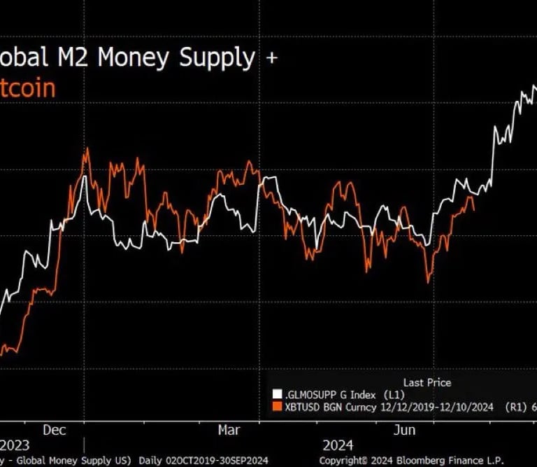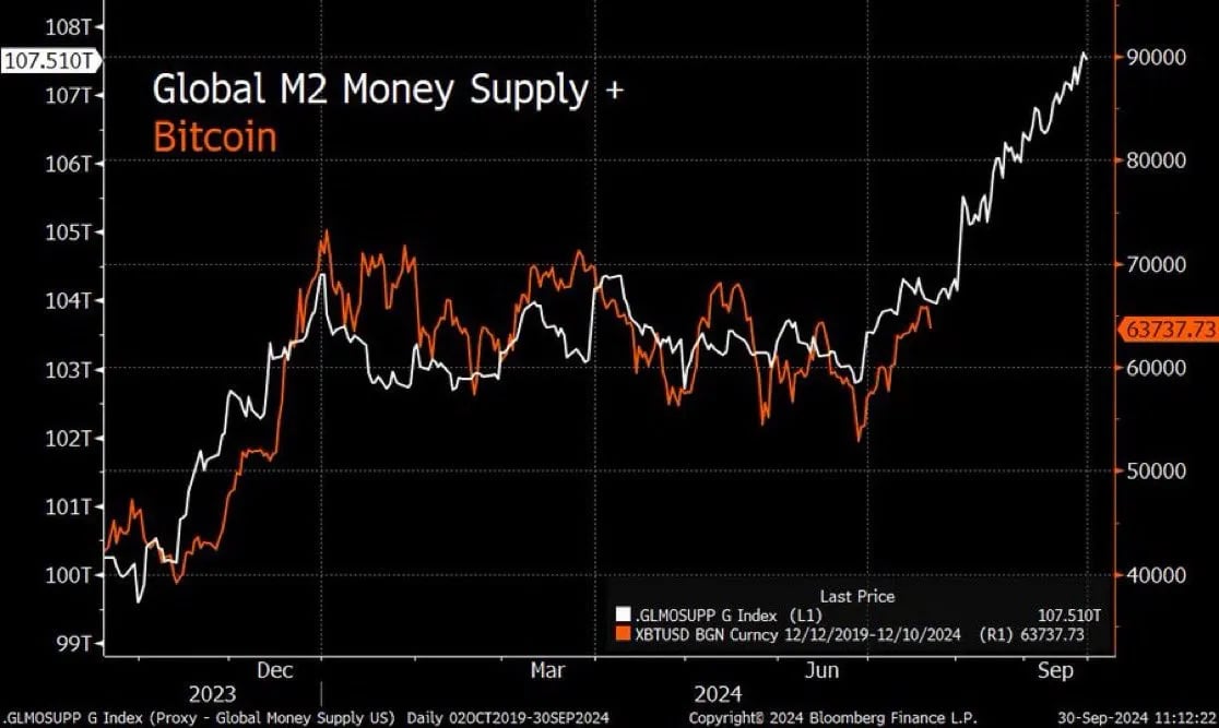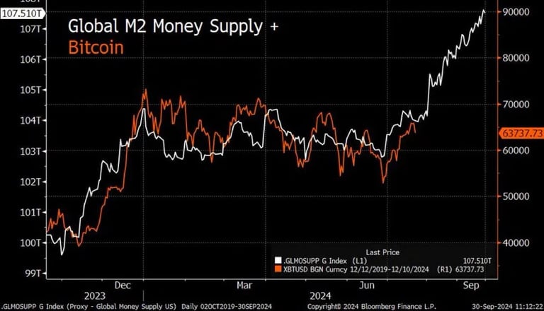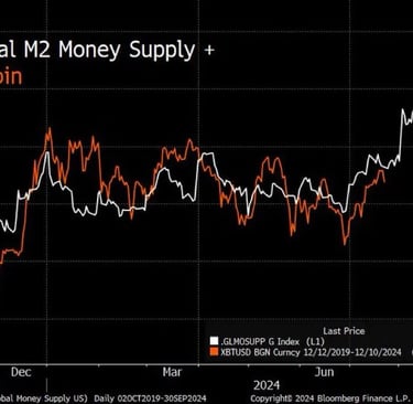 The correlation between global macro shifts and Bitcoin’s price action is undeniable. Take a look at the Bloomberg M2 Money Supply chart paired with Bitcoin’s trajectory. Historically, Bitcoin's price has surged whenever global liquidity has increased—and, right now, we are at the start of such a cycle.